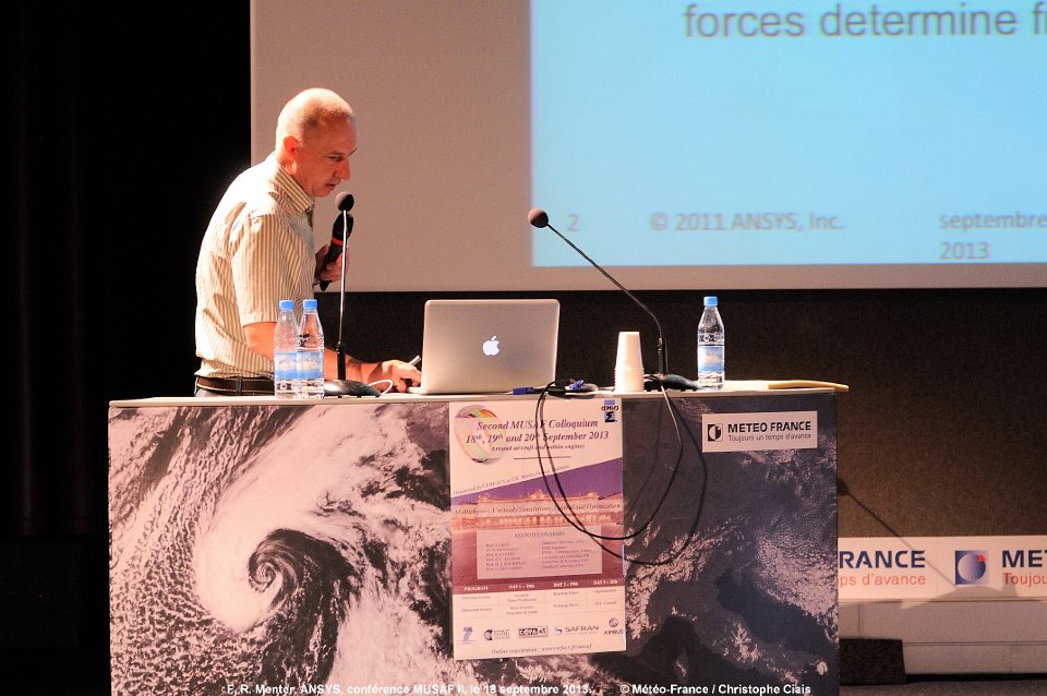 Conférence MUSAF II du CERFACS, au Centre International de Confé  Chairman : Arthur Rizzi, KTH, conférence MUSAF II, le 18 septembre 2013. Conférence MUSAF II du CERFACS, au Centre International de Confé  Holger Hennings, DLR, conférence MUSAF II, le 18 septembre 2013. Conférence MUSAF II du CERFACS, au Centre International de Confé  Holger Hennings, DLR, conférence MUSAF II, le 18 septembre 2013. Conférence MUSAF II du CERFACS, au Centre International de Confé  F. R. Menter, ANSYS, conférence MUSAF II, le 18 septembre 2013.